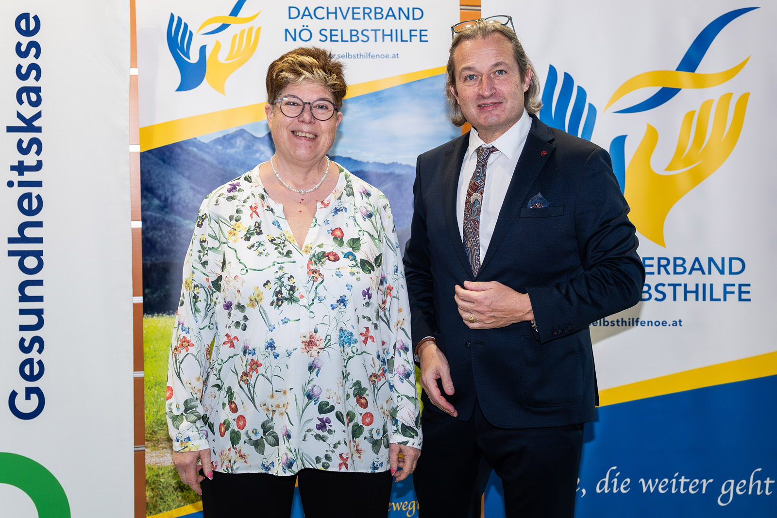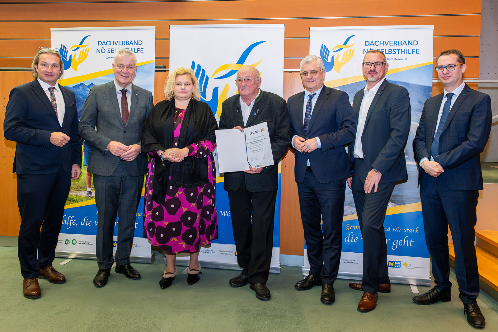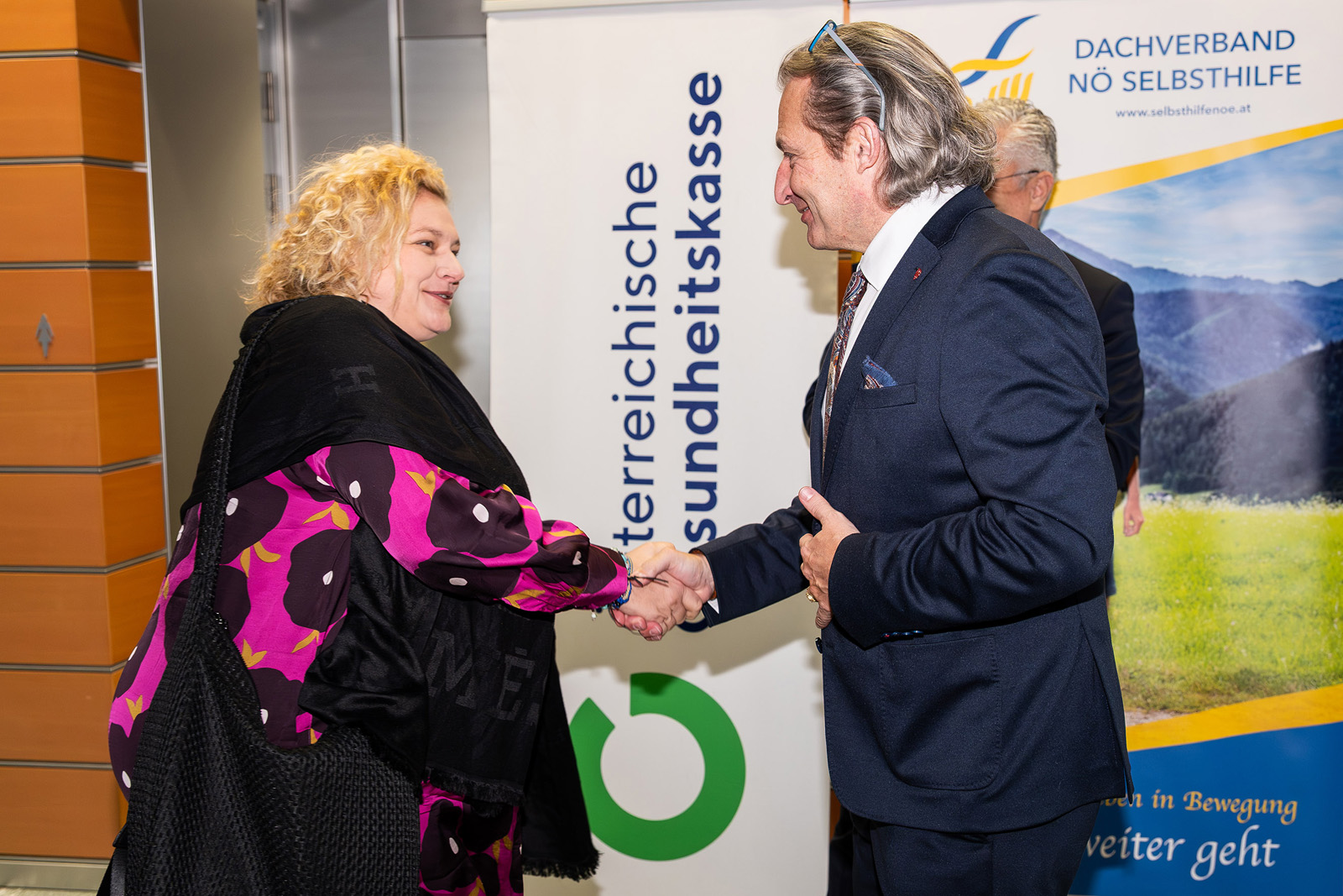 Robert Leitner, Landesstellenausschuss-Vorsitzender der ÖGK NÖ, begrüßte die Gäste mit der Erklärung, dass diese Veranstaltung ein Wohlfühltermin sei, für den man sich einfach Zeit nehmen müsse. Er überbrachte ein großes Dankeschön eines Kollegen, der nach 7 Jahren Leidensweg durch eine Selbsthilfegruppe wieder Lebensqualität gewonnen hat. Er zollte allen Selbsthilfegruppenleiterinnen und -leitern Respekt für Ihre Arbeit und Nächstenliebe und betonte, dass es der ÖGK eine Ehre und Freude sei, den Dachverband NÖ Selbsthilfe zu unterstützen.