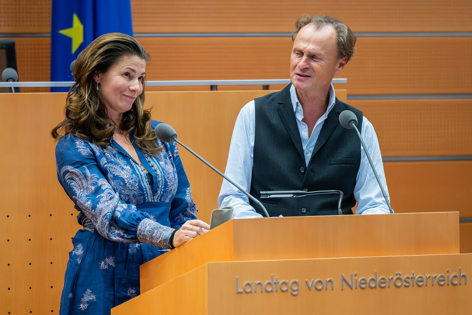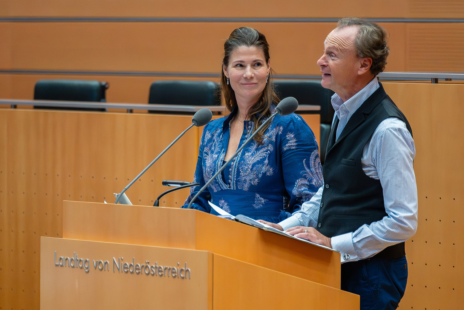 Nach dem Mittagsempfang, der von Landeshauptfrau Johanna Mikl-Leitner gegeben wurde, erwartete die Teilnehmerinnen und Teilnehmer noch ein vergnüglicher Nachmittag. Catherine Oborny und Kurt Hexmann erheiterten alle mit ihrer Lesung „Ach diese Männer! Ach diese Frauen!“